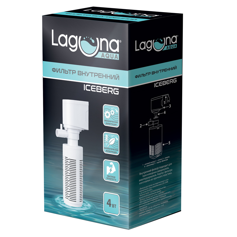 Фильтр внутренний JY401F, 4Вт, 400л/ч, 75*35*140мм, серия ICEBERG, Laguna AQUA