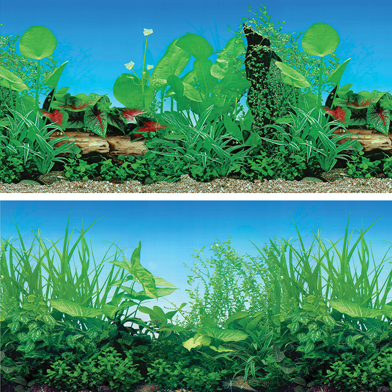 Двусторонний аквариумный фон на ламинированной бумаге с красочными фотографиями подводного мира. Фон для аквариума - это тот самый декоративный элемент, который не только скроет за собой все внешнее аквариумное оборудование, но и придаст аквариуму привлекательный внешний вид. Пленочные фоны - идеальное решение для вашего аквариума. Пленка с рисунком либо однотонная пленка клеится на заднюю стенку снаружи, так что в любой момент ее можно заменить. Если сам по себе аквариум не имеет особой привлекательности, то его можно украсить фоном с изображением подводного ландшафта. Если же дизайн аквариума не подразумевает применение цветного фона, идеальным решением будет однотонная пленка.