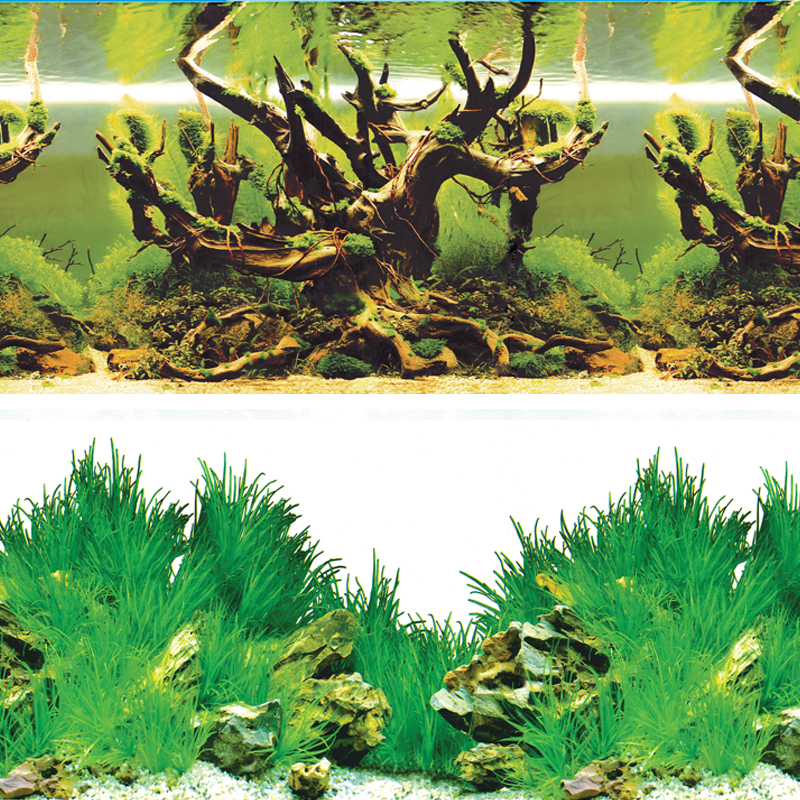 Двусторонний аквариумный фон на ламинированной бумаге с красочными фотографиями подводного мира. Фон для аквариума - это тот самый декоративный элемент, который не только скроет за собой все внешнее аквариумное оборудование, но и придаст аквариуму привлекательный внешний вид. Пленочные фоны - идеальное решение для вашего аквариума. Пленка с рисунком либо однотонная пленка клеится на заднюю стенку снаружи, так что в любой момент ее можно заменить. Если сам по себе аквариум не имеет особой привлекательности, то его можно украсить фоном с изображением подводного ландшафта. Если же дизайн аквариума не подразумевает применение цветного фона, идеальным решением будет однотонная пленка.