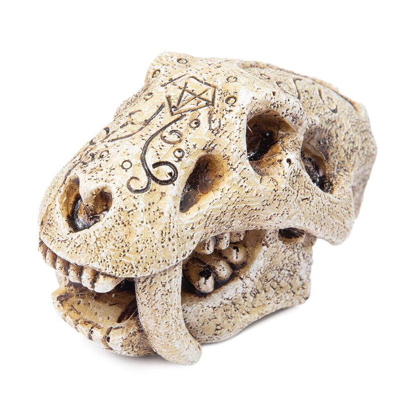 Небольшой реалистичный грот, стилизованный под череп ископаемого хищника - элемент для оригинального оформления любых пресноводных аквариумов, а так же для террариумов. Этот грот послужит дополнительным укрытием для маленьких рыб, отвечая тем самым не только за эстетику, но и принося обитателям аквариума реальную пользу. Такой грот может быть использован как самостоятельный элемент декора - для оформления небольшого аквариума, так и в комплекте с другими гротами, объемными фонами и искусственными растениями - для оформления аквариума большого объема. Изготовлен из нетоксичной полиэфирной смолы, очень прочный и долговечный, удобный в эксплуатации и совершенно безвредный для аквариумных жителей.
