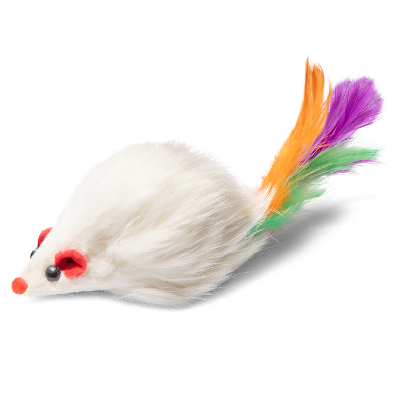 Игрушка для кошек "Мышка-погремушка с пером", изготовленная из натурального меха, позволит Вашей кошке почувствовать себя настоящей охотницей. Шум, который издает Мышка серая, привлечет внимание Вашей кошки. В пакете 24 штуки. Цвет: белый. Размер 40-45мм.
