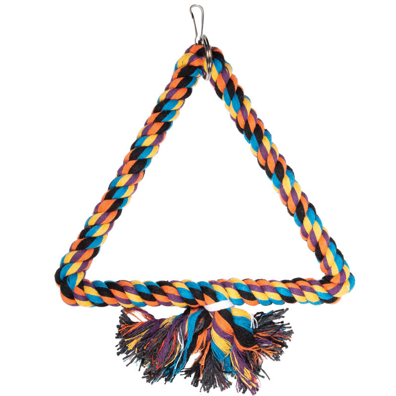 Качели для птиц с карабином для крепления. Верёвочные игрушки необходимы каждой птице. Птица не только точит когти и клюв, она может лазить по ним, укрепляя мышцы и поддерживая свой организм в тонусе. Верёвочные игрушки вызывают у птиц неподдельный интерес. Размер: 200/250мм.