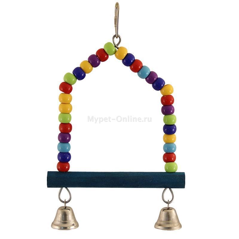 Игрушка-качели для птиц в виде качелей из бус и 2ух колокольчиков. Крепление: карабин.