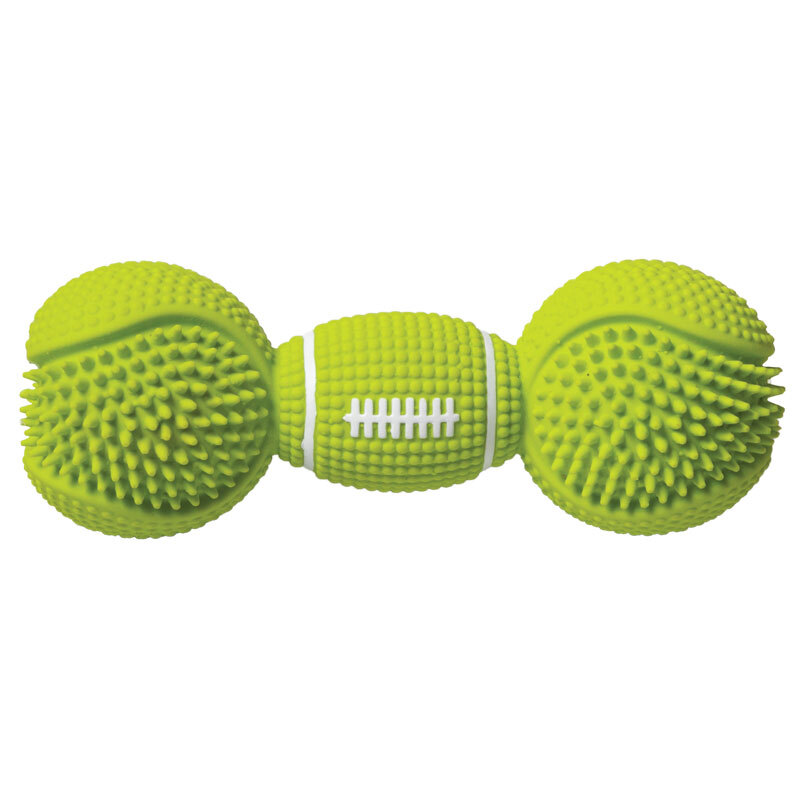 Забавная игрушка "Гантель Баскетбол" изготовлена из латекса - экологически чистого материала, который не содержит токсичных веществ и безопасен для животных. Такая игрушка приятна на ощупь, прочная и яркая, она также отлично очищает зубы, массирует десны и помогает собаке снимать стресс в отсутствие хозяина. Изделие отлично подходит для собак мелких и средних пород, а также - для щенков в период прорезывания зубов. Благодаря продуманным габаритам изделие удобно носить в зубах, мягкая текстура позволяет питомцу заниматься любимым делом - грызть, кусать и трепать игрушку, а звонкая "пищалка" внутри изделия пробуждает охотничьи инстинкты животного, делая игру еще интереснее. Цвет: салатовый. Размер: d50*150мм.