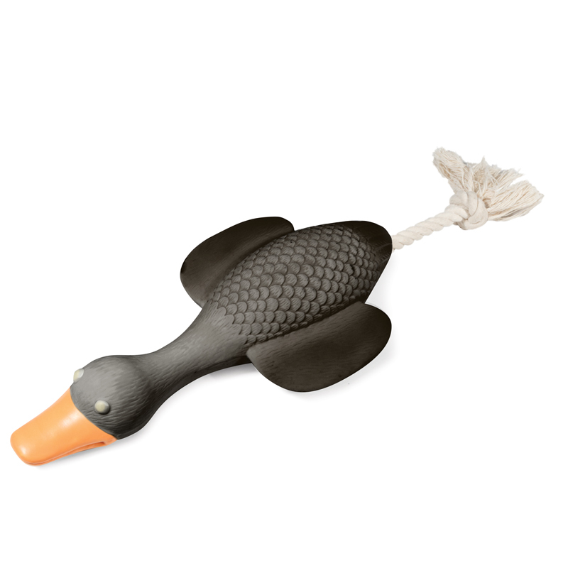 Забавная игрушка "Гусь с веревкой" изготовлена из латекса - натурального экологически чистого материала, который не содержит токсичных веществ и безопасен для животных. Такая игрушка приятна на ощупь, отлично очищает зубы, массирует десны и помогает собаке снимать стресс в отсутствие хозяина. Изделие отлично подходит для собак мелких пород, а также - для щенков в период прорезывания зубов. Благодаря продуманным габаритам игрушку удобно носить в зубах, а мягкая текстура и прочная веревка позволяют питомцу заниматься любимым делом - грызть, кусать и трепать свой трофей. К тому же звонкая "пищалка" внутри изделия пробуждает охотничьи инстинкты животного, делая игру еще интереснее. Цвет: темно-серый. Размер фигурки из латекса: 120*65*25мм, длина веревки: 90мм.