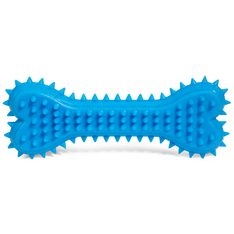 Полноценная жизнь собак – это не только сбалансированное питание и ежедневные прогулки, но и игры. Резиновые игрушки помогают снять стресс, если хозяина нет дома, а также способствуют формированию правильного поведения. Игрушки из резины достаточно прочные, они особенно незаменимы для собак с сильной жевательной потребностью. "Шипы" на поверхности игрушки способствуют чистке зубов и устранению зубного налета. Цвет изделия: розовый, синий, зеленый. Размер изделия: 150*55*25мм.