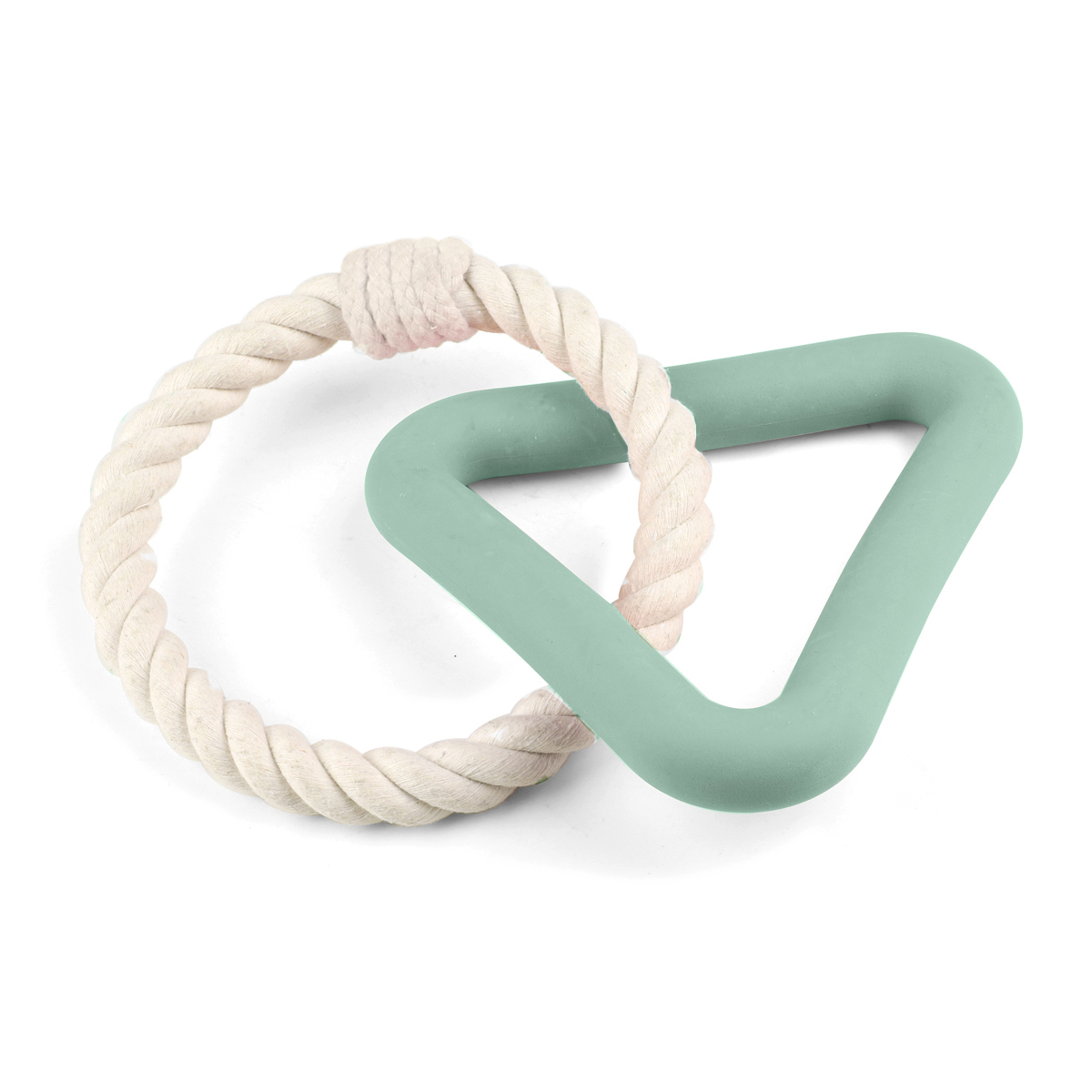 Игрушка в форме треугольника с веревочным кольцом выполнена из термопластичного эластомера - инновационного материала, обладающего высокой прочностью, устойчивостью к внешним воздействиям и изменению температуры. Плетеное кольцо изготовлено из хлопковых нитей, безопасных для вашего питомца. Сочетание двух материалов в игрушке сделает игру более разнообразной, а приятное цветовое сочетание будет радовать глаз. Цвет изделия: бело-голубой. Вес изделия: 200г. Размер изделия: 250*165*25мм.