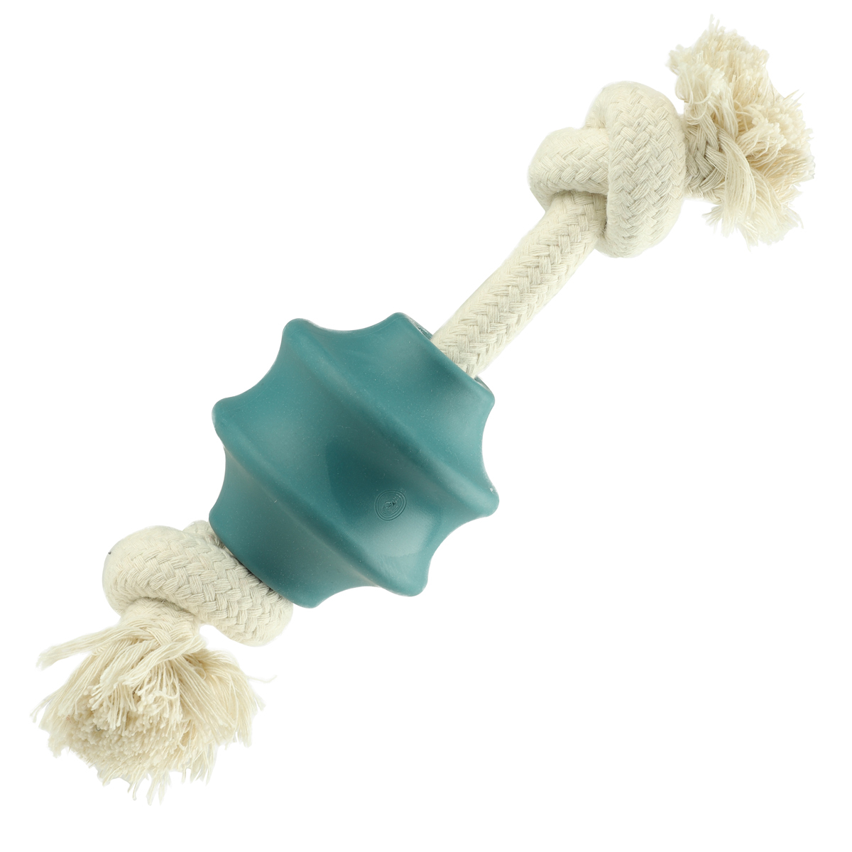 Игрушка в форме валика с веревочным основанием выполнена из термопластичного эластомера - инновационного материала, обладающего высокой прочностью, устойчивостью к внешним воздействиям и изменению температуры. Плетеная веревка изготовлена из хлопковых нитей, безопасных для вашего питомца. Сочетание двух материалов в игрушке сделает игру более разнообразной, а приятное цветовое сочетание будет радовать глаз. Цвет изделия: бело-голубой. Вес изделия: 160г. Размер изделия: d73*210мм.