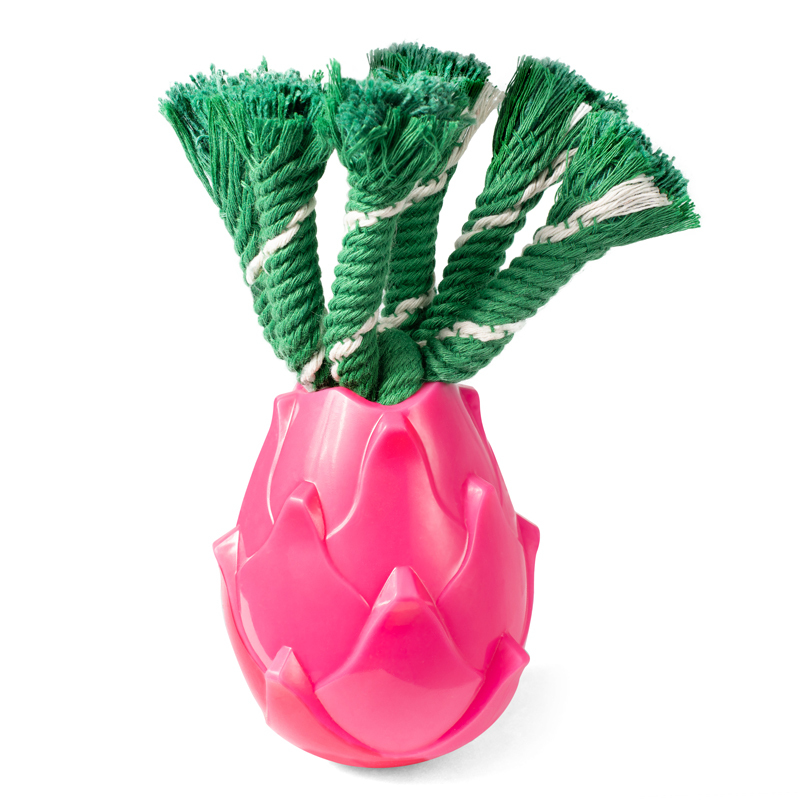 Фактурная игрушка для собак в форме драконьего фрукта из термопластичной резины с внутренним резиновым каркасом повышенной прочности. К внутренней части игрушки крепится толстый хлопчатобумажный витой шнур, имитирующий листочки. Игрушка устойчива к укусам собак крупных и средних пород с массивными челюстями. Термопластичная резина сохраняет упругость и эластичность даже при низких температурах и отличается длительным эксплуатационным периодом. Идеально подойдет для аппортировки и игре в воде. Материал мало подвержен химическому или термическому воздействию, не токсичен, без запаха, легко моется и не требует особого ухода. Цвет: "драконий фрукт" - розовый, веревка - зеленый. Размер: 155*97*77мм.