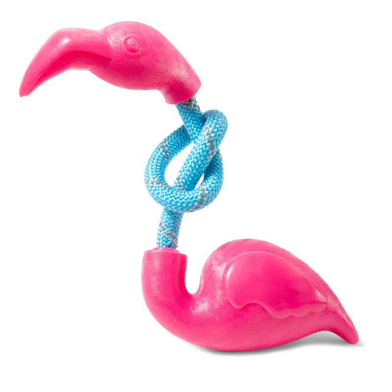 Фактурная игрушка для собак в форме фламинго состоит из 2‑х частей, соединенных массивным шнуром диаметром 10 мм. Тело и голова выполнены из термопластичной резины. Игрушка устойчива к укусам собак средних пород, в т.ч. с массивными челюстями. Идеальная для активных собак мелких и средних размеров, можно использовать как перетяжку. Термопластичная резина сохраняет упругость и эластичность даже при низких температурах и отличается длительным эксплуатационным периодом. Материал мало подвержен химическому или термическому воздействию, не токсичен, без запаха, легко моется и не требует особого ухода. Цвет: "фламинго" - розовый, веревка - синий. Размер: 235*125*40мм.