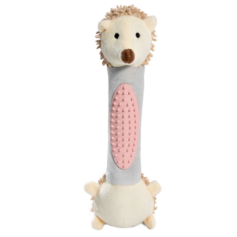 Мягкая игрушка "Ежик с тренажером для зубов" – это комбинация двух материалов: плюша и латекса. Мягкий плюш приятен на ощупь и функционален, а животик из латекса отлично очищает зубы и массирует десны. Изделие отлично подходит для собак средних пород, а также - для щенков в период прорезывания зубов. Такую игрушку удобно таскать в зубах и прятать в самых укромных уголках! Внутри игрушки расположена пищалка, которая вызывает интерес у питомца и пробуждает его охотничьи инстинкты. Игрушка выполнена из высококачественных материалов, что гарантирует безопасность животного. Цвет: бежево-серый. Размер изделия: 260*80*80мм.