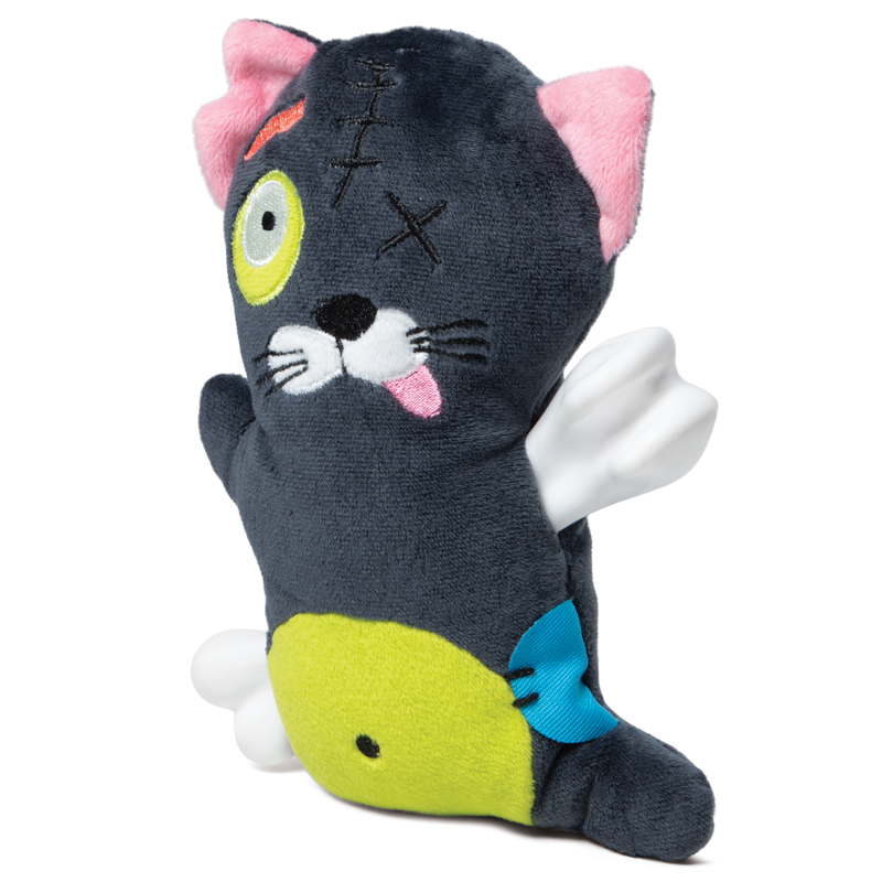 Забавная игрушка для собак "Кот-разбойник" с пищалкой внутри выполнена из мягкого плюша, а косточка из термопластичной резины. Прочная и функциональная, такая игрушка отлично подходит для дрессировки и натаскивания собак, которые так любят грызть и трепать мягкие игрушки, кусать и носить их в зубах. Игрушка "Кот-разбойник" доставит огромную радость собакам и их заботливым владельцам и послужит отличным подарком на Хэллоуин. Цвет: темно-серый с белым. Размер: 180*130*55мм.