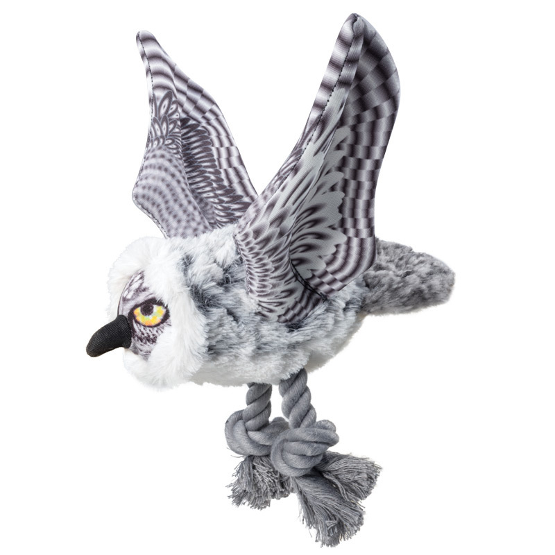 Эта очаровательная мягкая игрушка для собак с пищалкой внутри выполнена из плотного полиэстера и искусственного меха. Образ животного заимствован из дикой природы, поэтому она выглядит максимально реалистично. Благодаря прикрепленной веревке эта игрушка отлично подходит для тяговых игр с питомцем, дрессировки и натаски. Игрушка "Полярная сова" доставит огромную радость собакам и их заботливым владельцам. Цвет: серо-черный. Размер: 210*120*100мм.