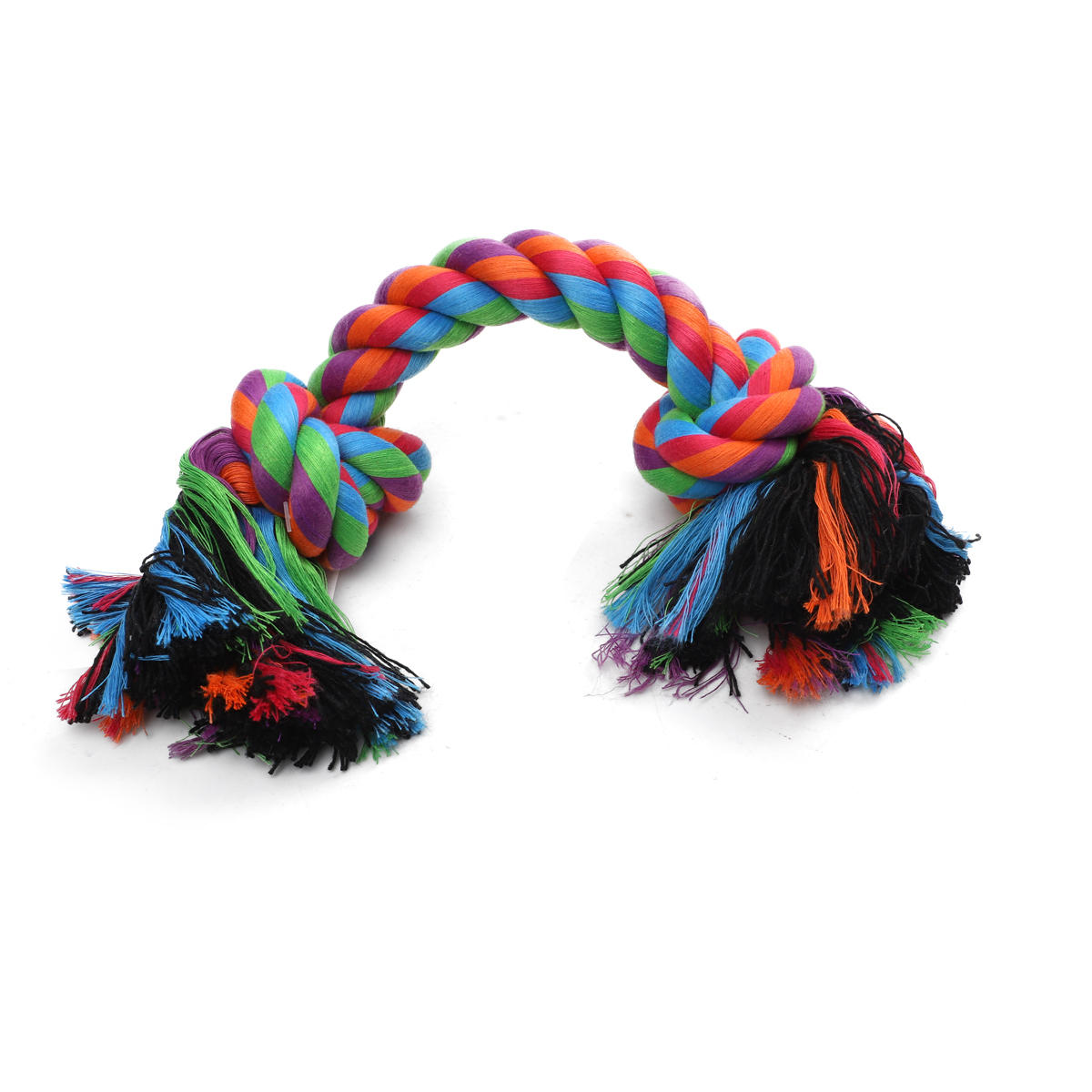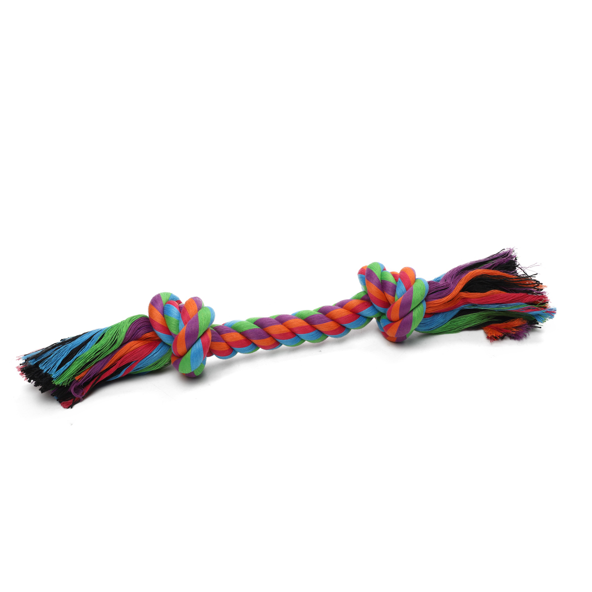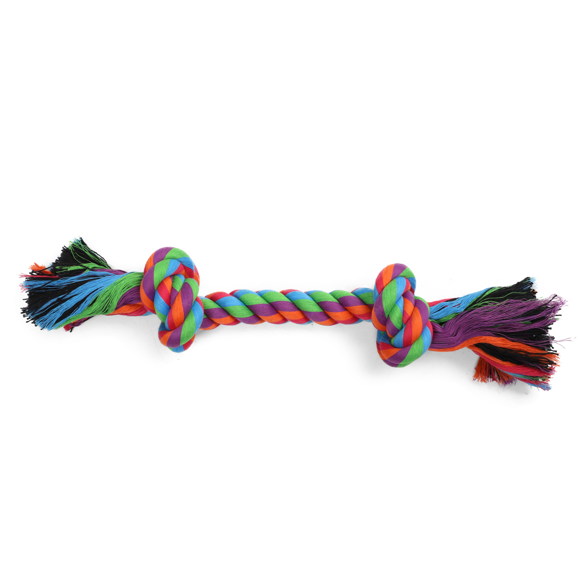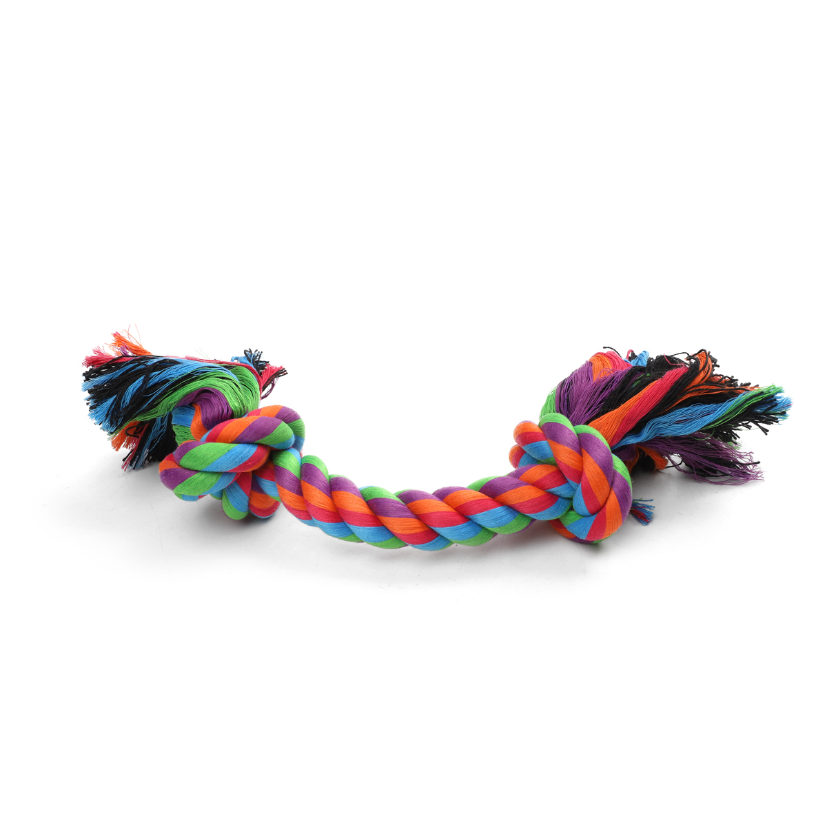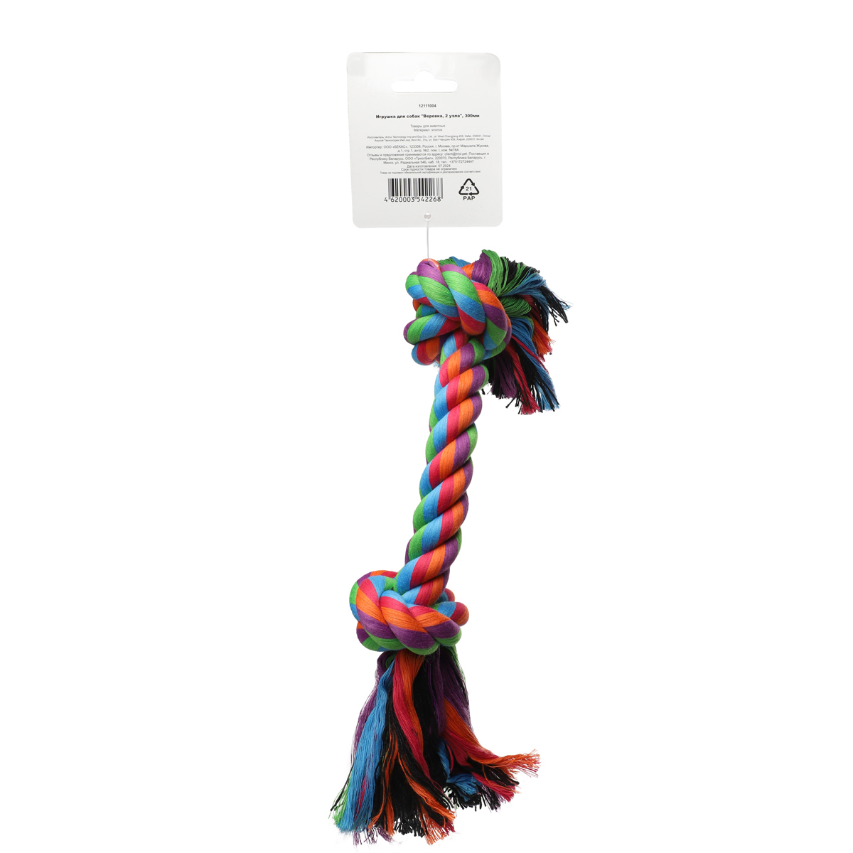 Собаки обожают играть с веревочными игрушками, так как их можно грызть, трепать и носить в зубах. Такие игрушки отлично массируют десны и очищают зубной налет во время игры. Веревки сплетены из нитей натурального хлопка, поэтому безопасны для здоровья Вашего питомца. Цвет: разноцветный. Вес: 200-210г. Длина веревки: 300мм.