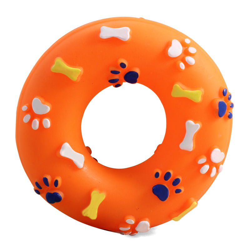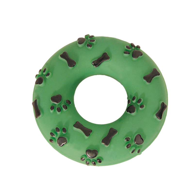 Виниловые игрушки помогают собаке снять стресс, если хозяина нет дома, массируют десны, а также способствуют формированию правильного поведения у собаки. Игрушка легко моется и не требует особого ухода. Игрушка "Кольцо" станет прекрасным подарком для неугомонного четвероногого питомца. С пищалкой внутри. Размер: d130*35мм.