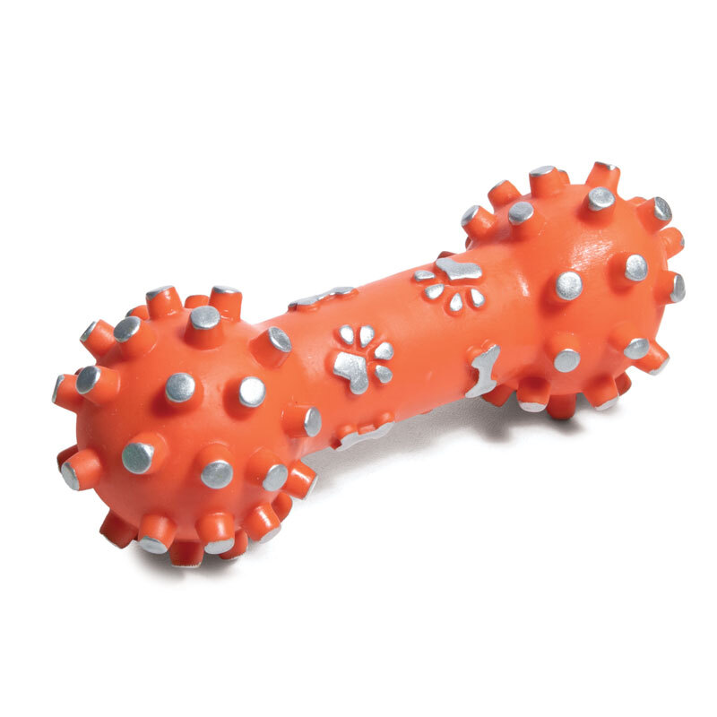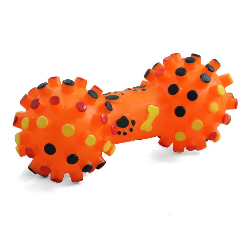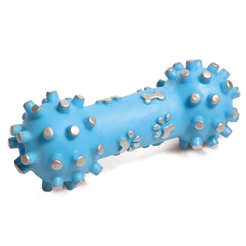 Виниловые игрушки помогают собаке снять стресс, если хозяина нет дома, массируют дёсны, а также способствуют формированию правильного поведения у собаки. Игрушка легко моется и не требует особого ухода. Игрушка "Гантель" станет прекрасным подарком для неугомонного четвероногого питомца. С пищалкой внутри. Цвет: коралловый, голубой. Размер d80*200мм.