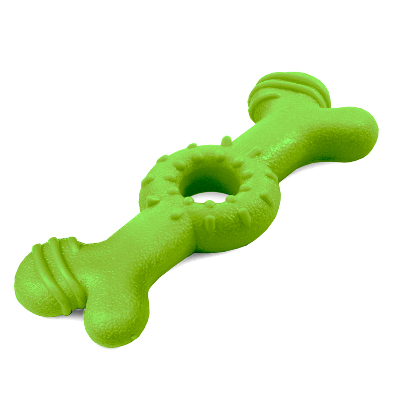 Оригинальная игрушка в форме косточки выполнена из термопластичной резины и подходит для собак средних пород. Прочная и в то же время обладающая мягкой структурой, она станет идеальным решением для четвероногих питомцев. Изделие послужит хорошим "напарником" для игры и позаботится о здоровье зубов животного. Тонкий аромат яблока дополнительно привлечет внимание питомца и позволит сделать игру или тренировку еще интереснее. Цвет изделия: зеленый. Размер изделия: 180*60*25мм.