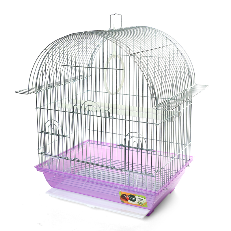 Оригинальная клетка для птиц с фигурной крышей - полезный аксессуар для владельцев пернатых питомцев. Надежная, просторная и очень удобная, такая клетка займет достойное место в любом интерьере, отвечая всем жизненным потребностям домашних любимцев. В комплектацию изделия входят 2 внутренние кормушки, 2 пластиковые жердочки и качели. Клетка оборудована удобной ручкой для переноски и специальным пластиковым наружным поддоном, облегчающим процесс уборки. Цвет: голубой, зеленый, сиреневый. Размер изделия: 345*260*440мм.