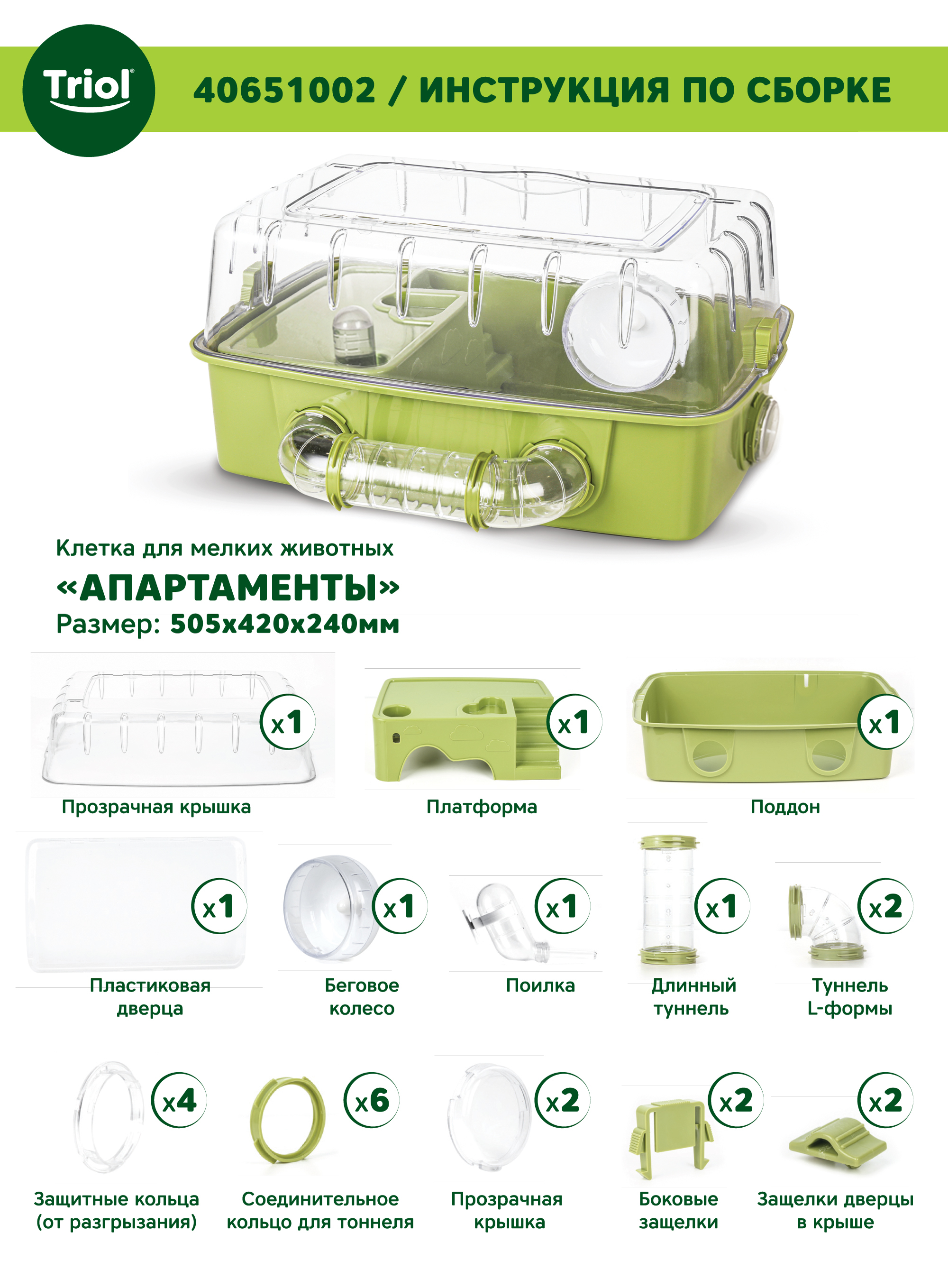Благодаря универсальному дизайну клетка «Апартаменты» впишется в любой интерьер. Прозрачный корпус изделия позволит свободно наблюдать за жизнью любимца.