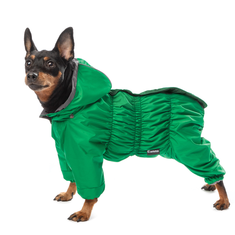 Яркий демисезонный комбинезон с капюшоном изготовлен из мягкого флиса с комбинацией современной курточной ткани Дюспо, которая эффективно отталкивает влагу, не пропускает ветер, не боится сильных морозов и ярких солнечных лучей. Комбинезон выполнен с учетом анатомических особенностей тела собаки, имеет специальные вставки из резинок, что позволяет изделию плотно сидеть на собаке, а также декорирован функциональным светоотражающим элементом.