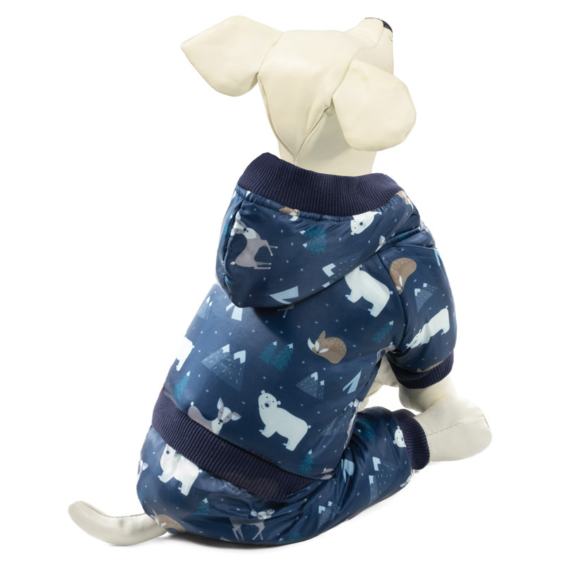 Утепленный комбинезон "Арктика" - это практичный, стильный и по-настоящему теплый аксессуар для собак. Такая одежда защитит шерсть животного от дождя и грязи, а непродуваемая ткань - от сильного ветра и холода. Комбинезон садится "по фигуре" питомца и не стесняет его движений во время прогулки. Изделие с модным принтом и капюшоном надежно фиксируется при помощи трех заклепок на животе, а на штанинах предусмотрены удобные резинки, препятствующие попаданию грязи или налипанию снега снизу. Подкладка: футер. Длина спины: 250мм; обхват груди: 380мм; обхват шеи: 270мм. Цвет: темно-синий.