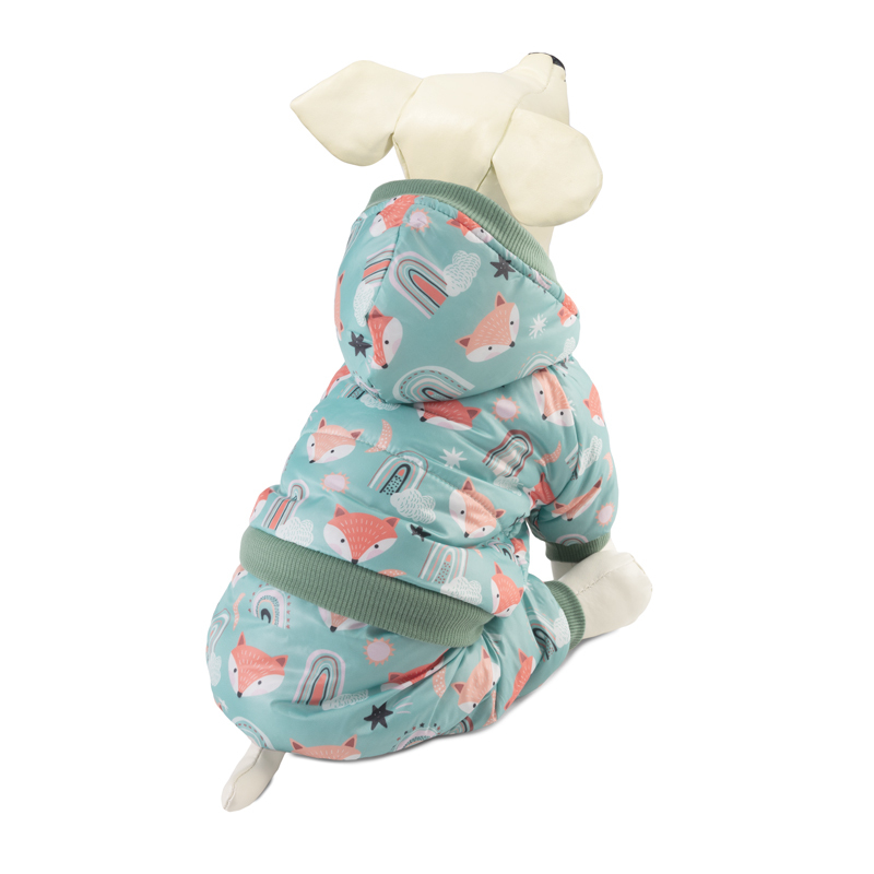 Утепленный комбинезон "Лисята" - это практичный, стильный и по-настоящему теплый аксессуар для собак. Такая одежда защитит шерсть животного от дождя и грязи, а непродуваемая ткань - от сильного ветра и холода. Комбинезон садится "по фигуре" питомца и не стесняет его движений во время прогулки. Изделие с модным принтом и капюшоном надежно фиксируется при помощи трех заклепок на животе, а на штанинах предусмотрены удобные резинки, препятствующие попаданию грязи или налипанию снега снизу. Подкладка: флис. Длина спины: 200мм; обхват груди: 340мм; обхват шеи: 240мм. Цвет: мятно-оранжевый.