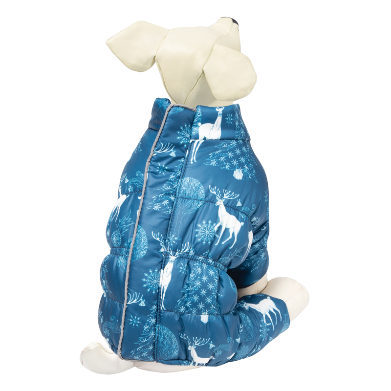 Утепленный комбинезон "Олень" с молнией на спине - это практичный, стильный и по-настоящему теплый аксессуар для собак. Такая одежда защитит шерсть животного от грязи, а непродуваемая ткань - от сильного ветра и холода. Благодаря продуманному до мелочей крою комбинезон садится "по фигуре" питомца и не стесняет движений во время прогулки за счет эластичной резинки на талии. Изделие с модным принтом и воротником застегивается при помощи молнии на спине, защищенной от попадания шерсти, грязи или налипания снега специальной планкой. Особенностью комбинезона является светоотражающая полоска, идущая по спинке изделия, - для максимальной безопасности животного на дороге. Изделие имеет закрытую зону на животе, а подкладка выполнена из флиса. Модель унисекс. Длина спины: 200мм; обхват груди: 340мм; обхват шеи: 240мм. Цвет: серо-синий с белым.