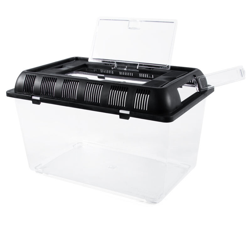 Контейнер для содержания и разведения рептилий является идеальным террариумом для разведения гекконов, змей, лягушек, пауков. Идеален для транспортировки террариумных животных и живых кормов. Имеет специальную дверцу для кормления. Контейнер имеет вентиляционные отверстия и дверцу для легкого доступа на крышке.