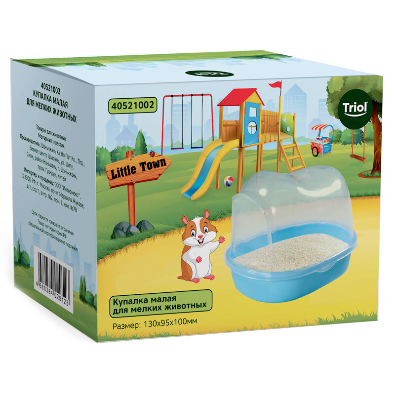 Малая купалка для мелких животных – это важный аксессуар для владельцев домашних грызунов. Благодаря навесной дверце, питомец сможет «принимать ванну», не разбрызгивая воду. Такая процедура не только поддерживает гигиену, но и отлично разнообразит досуг любимца. Изделие выполнено из прочного и нетоксичного полипропилена, а потому – совершенно безвредно для животных. Цвет: голубой. Размер:130*95*100мм.