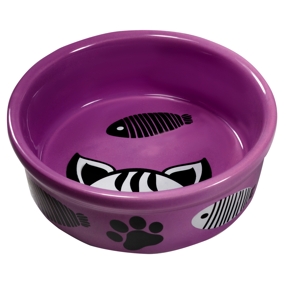 Эта стильная и функциональная миска для кошек выполнена из высококачественной керамики оригинальной расцветки. Такая миска идеально подойдет как для воды, так и для корма любой консистенции. Она комфортна для питомца и легко моется под струей проточной воды с использованием моющих бытовых средств. А выразительный дизайн позволит ей стать украшением любого интерьера. Цвет: фиолетовый. Размер: d дна - 112мм; d верхней части - 125мм; высота - 45мм. Объем 0,25л.