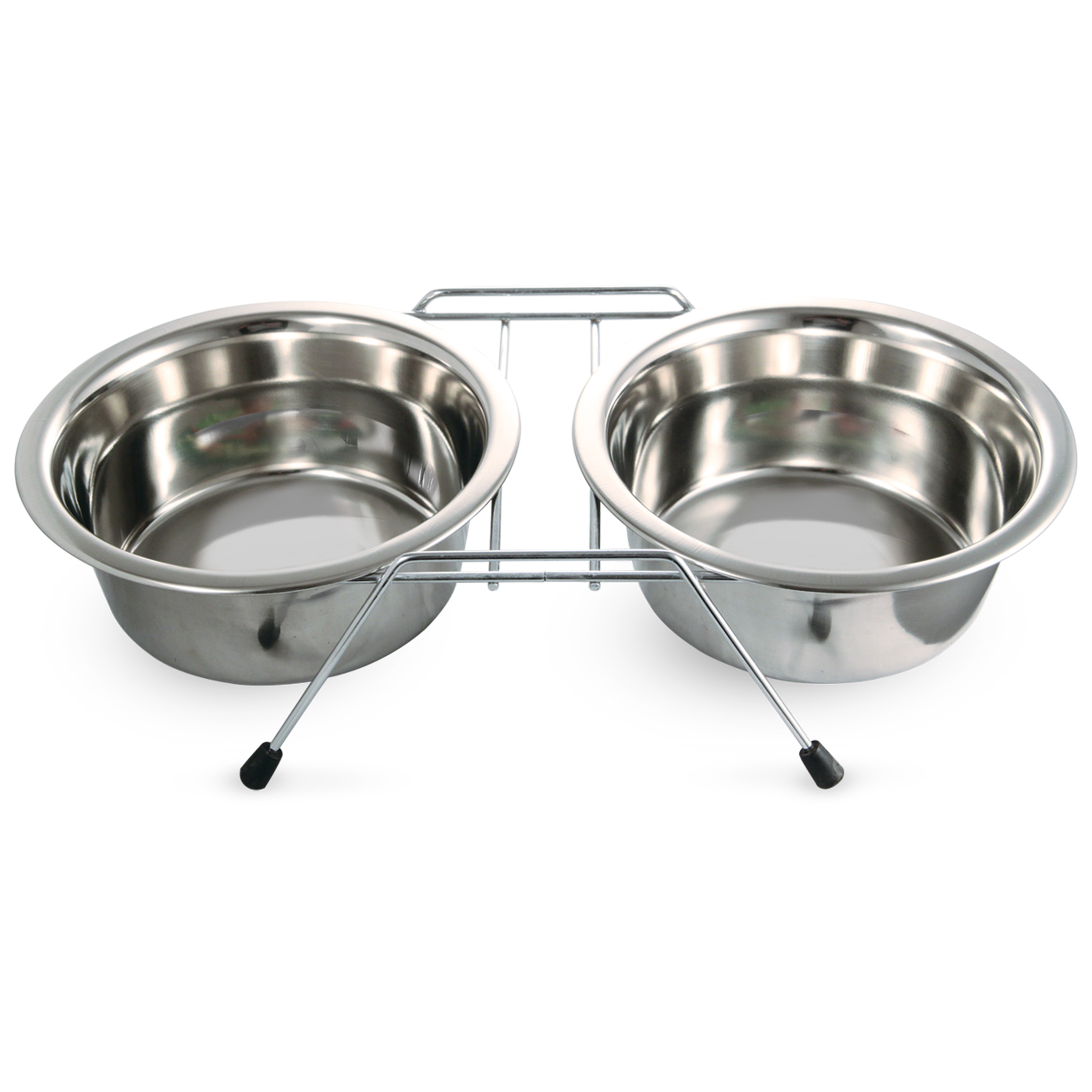 Этот функциональный комплект из двух универсальных круглых мисок для собак на подставке выполнен из нержавеющей стали высокого качества. Такие миски идеально подходят как для воды, так и для корма разной консистенции. Изделие комфортно для питомца и легко моется под струей проточной воды с использованием моющих бытовых средств. Объем: 2*0,2л. Размеры: 110*110*45мм.