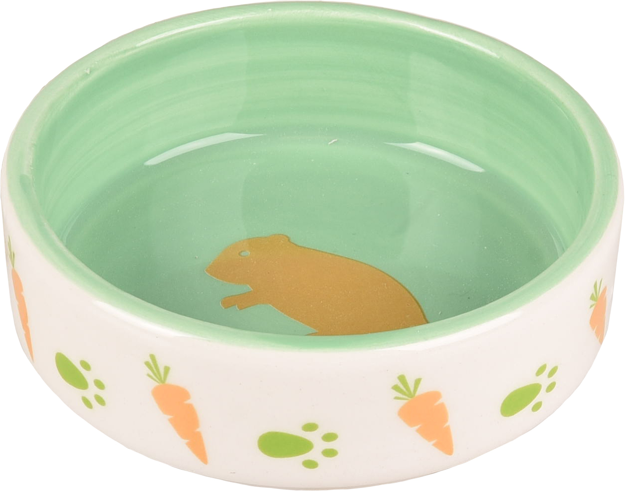 Миска керамическая для мелких животных, AILA 100 мл/ 8,5 x 2,8 см, белый/зелёный, Flamingo