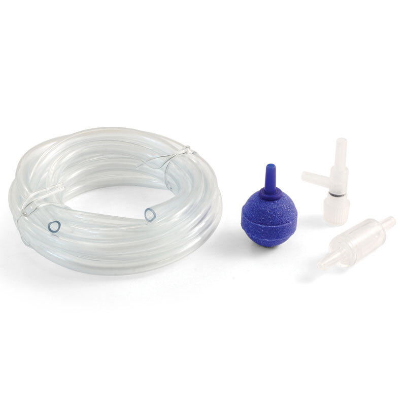 В наборе все необходимое для подключения аквариумного компрессора. Шланг силиконовый длиной 2 метра диаметром 4мм, распылитель в виде шара, обратный клапан (для предотвращения попадания воды в компрессор по причине внезапной остановки), кран-переключатель для подсоединения дополнительного шланга.