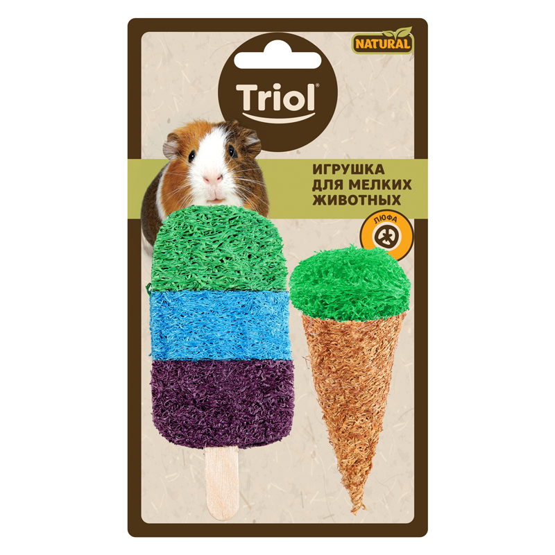 Порадуйте своего питомца игрушкой для мелких животных из люфы "Мороженое"! Во время игры происходит мягкая механическая очистка зубных поверхностей, поскольку крупноволокнистая структура игрушек идеально подходит для снятия зубного налета. При регулярном использовании они позволяют поддерживать здоровье полости рта питомца. Игрушка изготовлена из натурального материала - люфы, растения из семейства тыквенных, а, значит, абсолютно безопасна для вашего питомца. Цвет: разноцветный. Размер: мороженое на палочке - 90мм; в стаканчике - 75мм.
