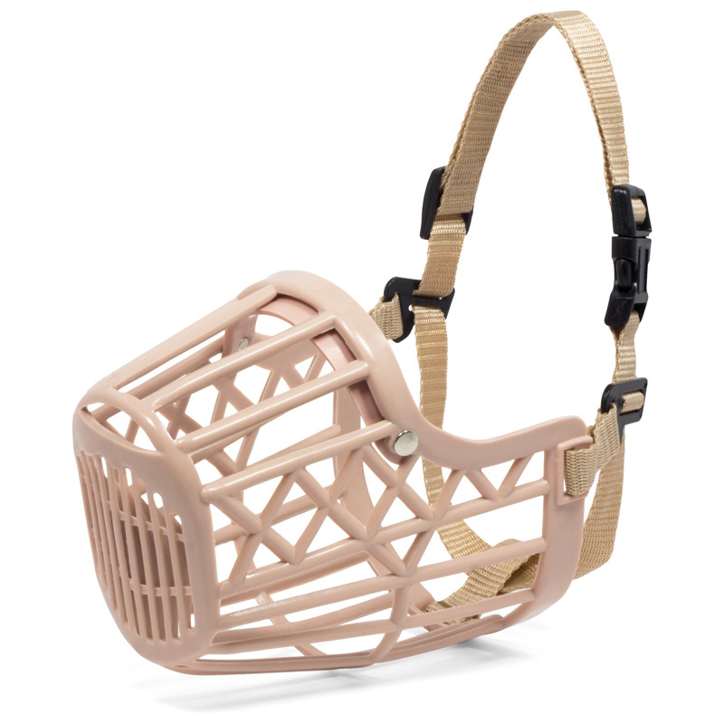 Легкое и прочное изделие закрыто сеткой для дополнительной безопасности, а надежную фиксацию обеспечивает удобный нейлоновый ремень с опцией регулировки длины. Намордник выполнен в бежевом цвете.