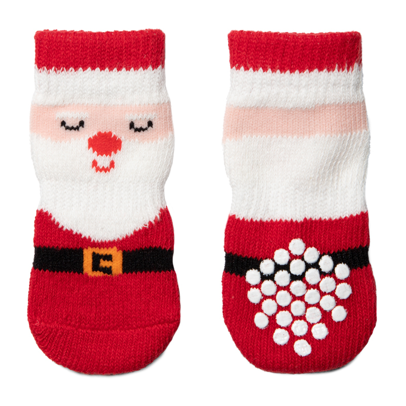 Домашние носочки с новогодним дизайном "Дед Мороз" - подарят вам и вашему любимому питомцу новогоднее настроение, порадуют окружающих. Такие носочки ограждают интерьер от когтей любимца и, благодаря противоскользящему покрытию, позволяют четвероногому питомцу с комфортом передвигаться по паркету, кафелю и другим скользким покрытиям. Теплые, легкие и функциональные, эти носочки также отлично подойдут для согревания лапок питомца в зимний период, если их одеть под ботинки. Цвет: красно-белый. Размеры изделия: 25*60мм.