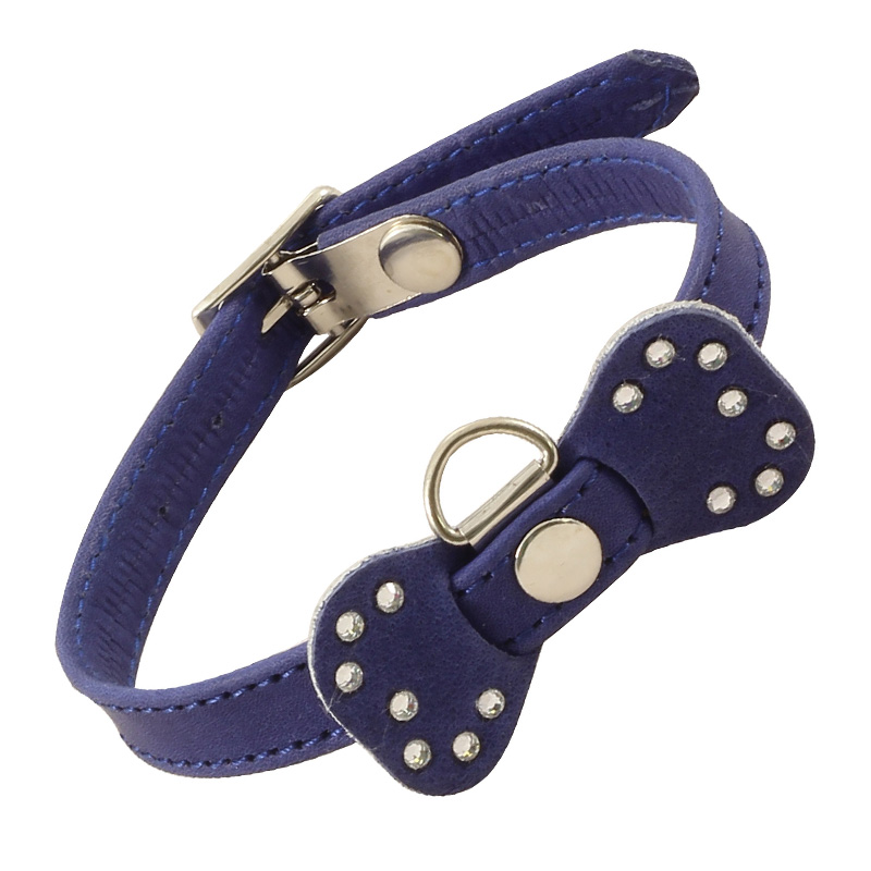 Оригинальный кожаный ошейник - стильный и функциональный аксессуар для небольших собак. Двухслойное изделие выполнено из мягкой, но прочной цветной кожи высокого качества с использованием крепкой металлической фурнитуры и оригинальным декором в виде бантика. Длину изделия удобно подгонять под индивидуальные параметры животного, а прочное основание ошейника отлично подойдет для крепления поводка, адресника или других аксессуаров. Размеры изделия: 250х12х2мм. Варианты расцветок: красный, синий, коричневый, черный.