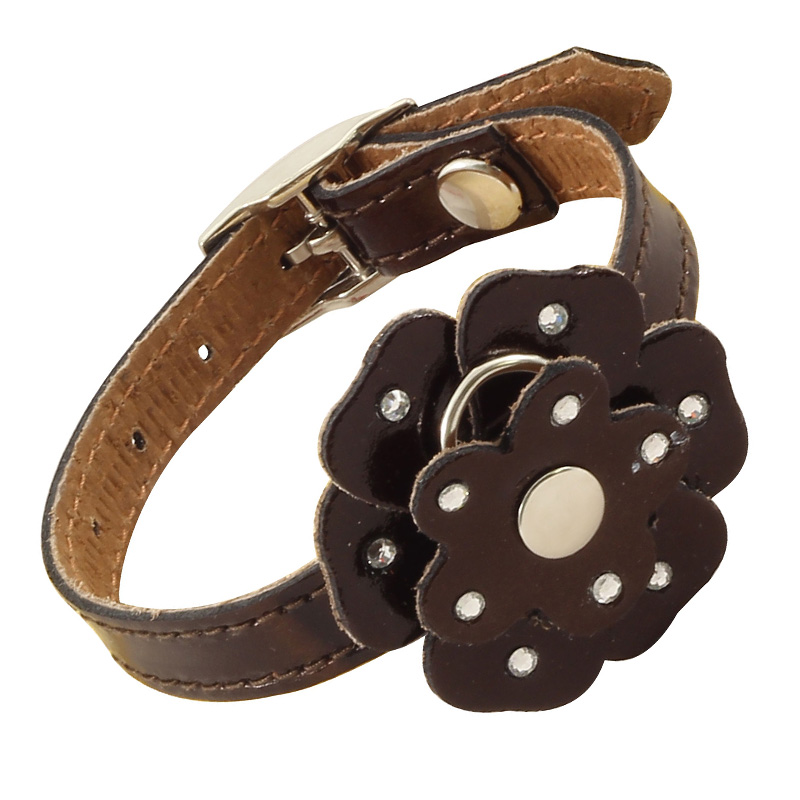 Оригинальный кожаный ошейник - стильный и функциональный аксессуар для небольших собак. Двухслойное изделие выполнено из мягкой, но прочной цветной кожи высокого качества с использованием крепкой металлической фурнитуры и оригинального цветочного декора. Длину изделия удобно подгонять под индивидуальные параметры животного, а прочное основание ошейника отлично подойдет для крепления поводка, адресника или других аксессуаров. Размеры изделия: 200*12*3мм. Варианты расцветок: красный, синий, коричневый, черный.