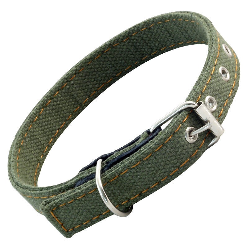 Одинарный прошитый ошейник из брезента с кожаным подпряжником и прочным кольцом для крепления поводка или водилки. Такой ошейник отлично подойдет для собак небольших пород (размеры изделия 530х25 мм). Материал прочный и износостойкий, а длина изделия удобно регулируется. Цвет: хаки.