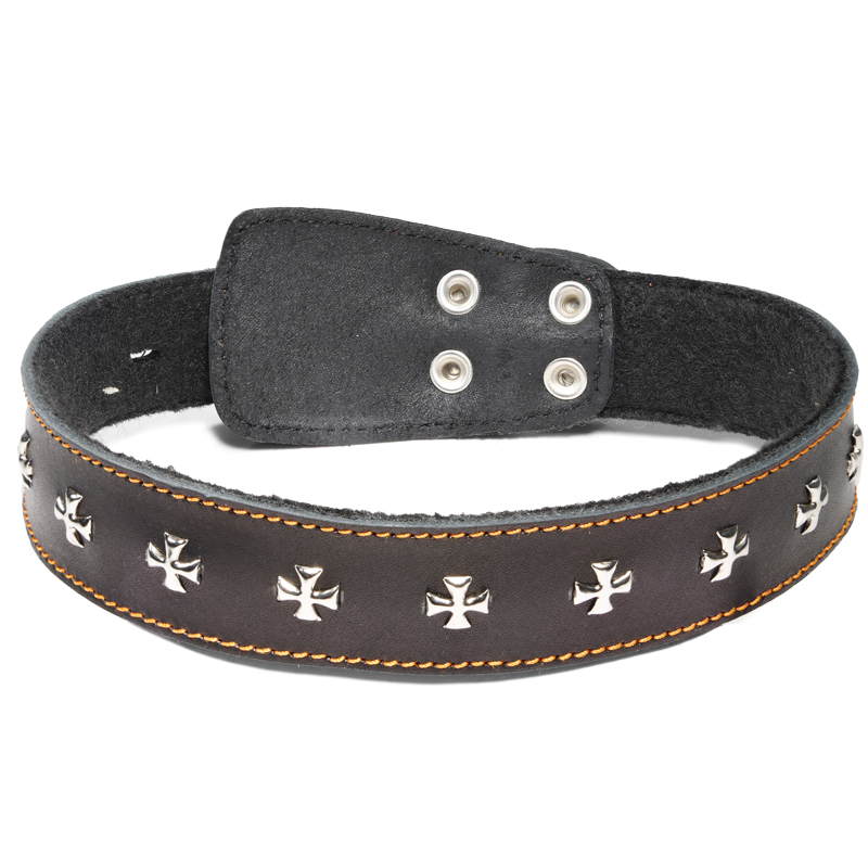 Кожаный ошейник "Орден" - незаменимый аксессуар для владельцев собак всех пород и возрастов. Изделие выполнено из мягкой, но прочной кожи высокого качества с элементами из синтепона и использованием крепкой металлической фурнитуры, а так же оригинальными аксессуарами. Размеры изделия: 630*35*4мм. Цвет: черный, коричневый, коньяк.