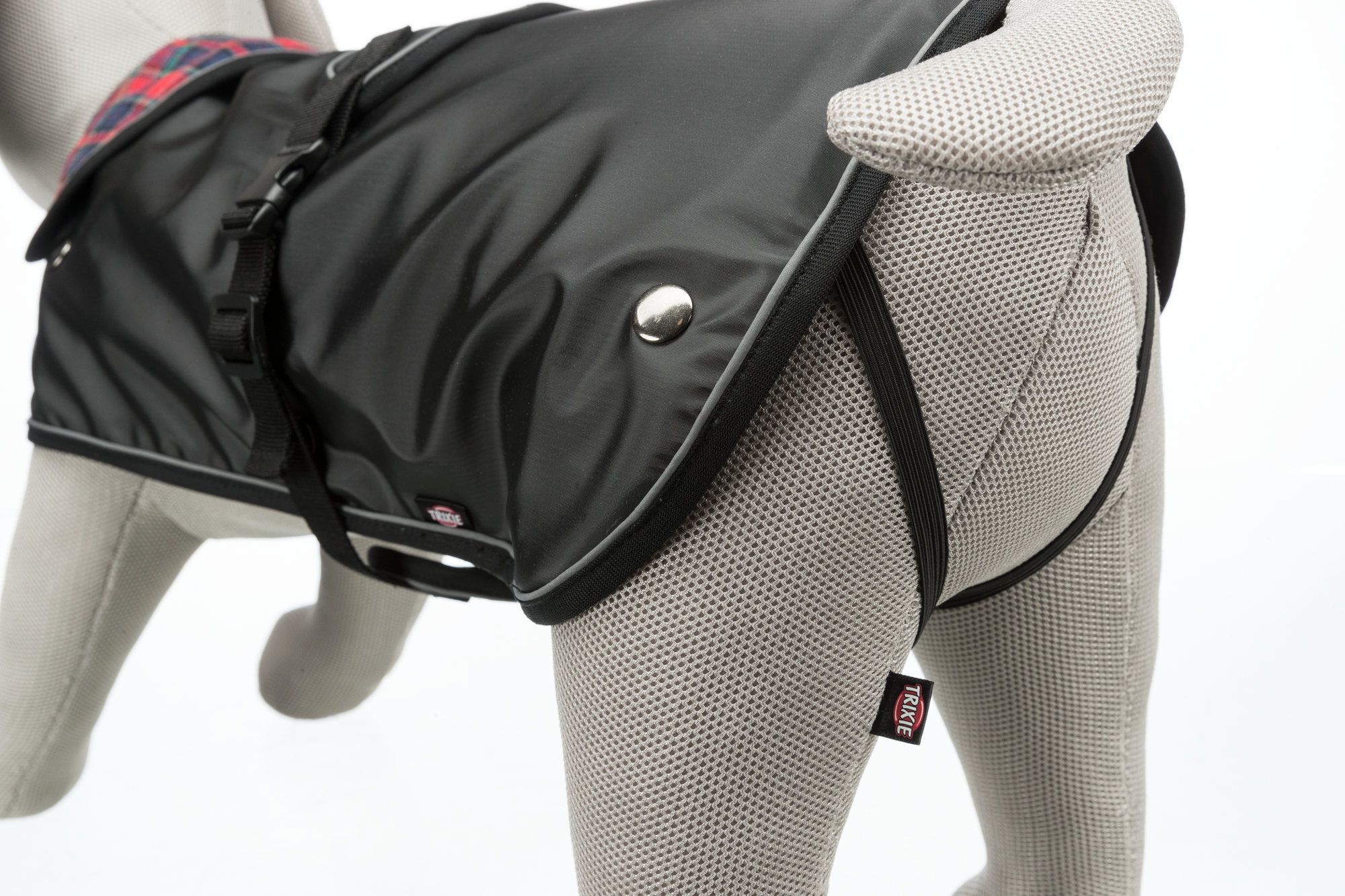 - с двумя водонепроницаемыми молниями на воротничке: для крепления поводка к ошейнику/на спинке для использования шлейки