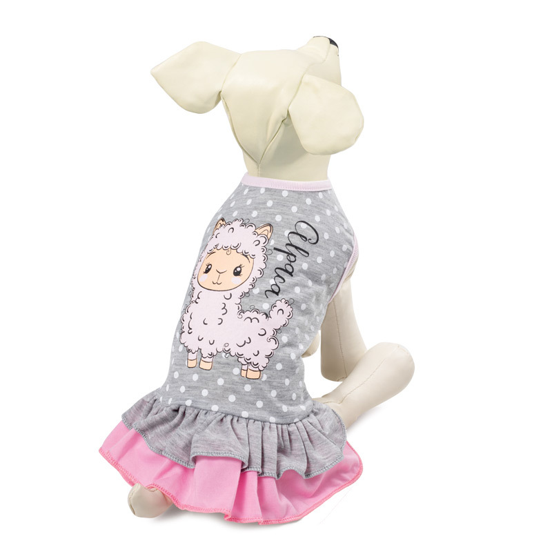 Летнее платье без рукавов "Альпака" с серо-розовой юбочкой и очаровательным рисунком сделает Вашу воспитанницу неотразимой. Специальный удобный крой гарантирует свободу движений, что немаловажно для прогулок. Подходит для собак мелких пород. Размер изделия: 200х340х240мм. Цвет: серый.