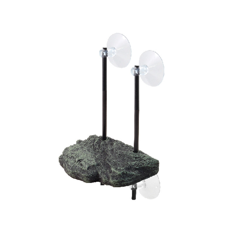 Плавающий плотик для водных черепах. Пластиковые направляющие крепятся к стенкам акватеррариума с помощью присосок, по направляющим свободно перемещается плотик, держащийся на поверхности воды за счет пористой структуры. При оформлении плотика применяется краска, устойчивая к механическому истиранию. Неровная поверхность имитирует скалистый берег.