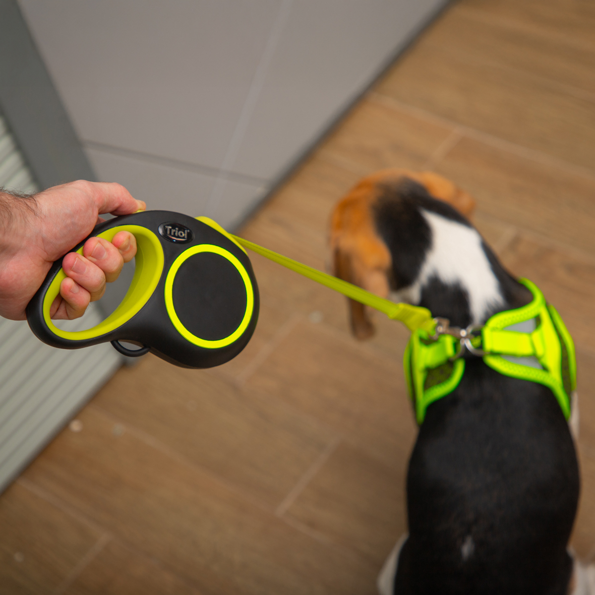 Рулетки для собак "Urban Neon" отлично подойдут для ежедневных прогулок с питомцем. Главные преимущества серии - это удобство и надежность. Эргономичный дизайн и обтекаемая форма изделий будут комфортны в ежедневном использовании. Приятная на ощупь прорезиненная ручка не позволяет ладони проскальзывать и обеспечивает надежный захват. Ленточный тип рулетки обеспечивает прочность и долговечность и отлично выдерживает заявленную нагрузку. Неоново-желтая окружность на рулетке - это не просто элемент декора, вместе с прострочкой с двух сторон ленты, она обладает светоотражающим эффектом и обеспечит дополнительную безопасность на дороге в темное время суток.