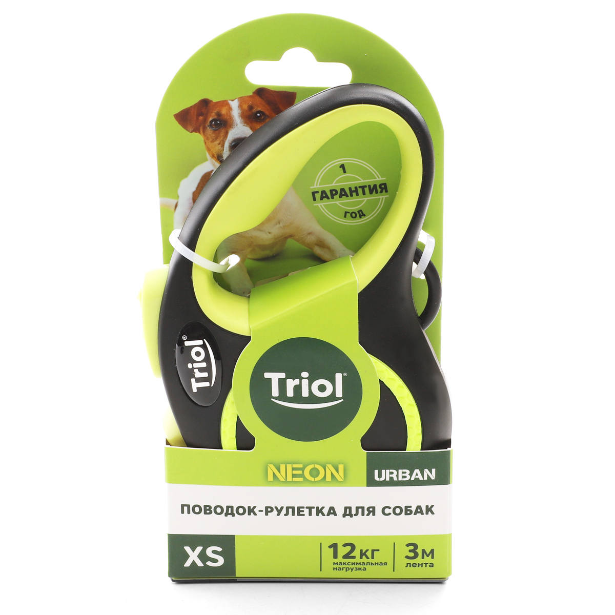 Рулетка предназначена для собак малых и средних пород весом не более 12кг. Длина ленты: 3 м. Цвет: неоново-желтый с черным.