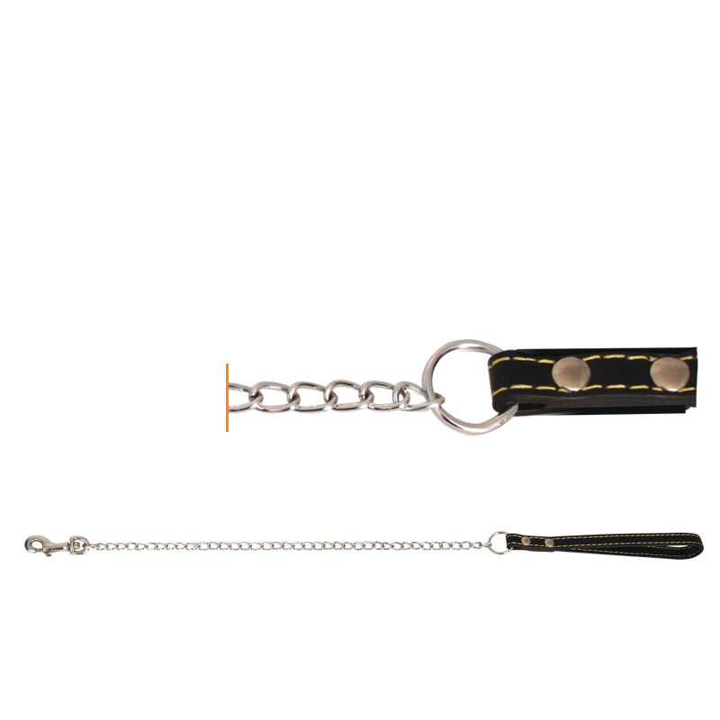 Особопрочный поводок-цепь для сильных и очень активных собак. Звенья и кольца сварные, с качественным стойким хромированием, стальной карабин. Цепь имеет ровный строй, не перекручивается. Отлично подойдет для повседневного выгула, а также для дрессировки собаки. Кожаная ручка сделает использование максимально удобным для хозяина. Диаметр проволоки - 1,6мм, длина - 1100мм.