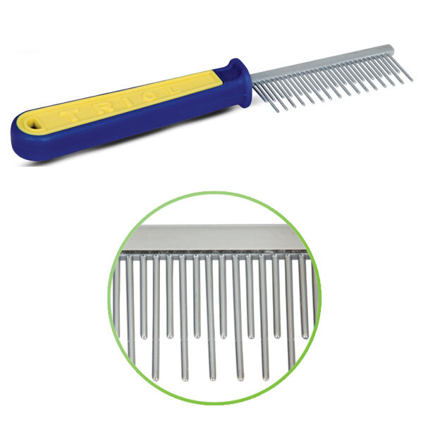 Комбинированная расческа для животных серии "Спорт" идеально подходит для ухода за нежной, тонкой и гладкой шерстью питомцев. Используется для удаления уже выпавших волос и уменьшения линьки. Изделие имеет по 16 металлических зубцов разной длины и удобную пластиковую ручку. Размер 200х30х20мм. Упаковка: пакет с клапаном.