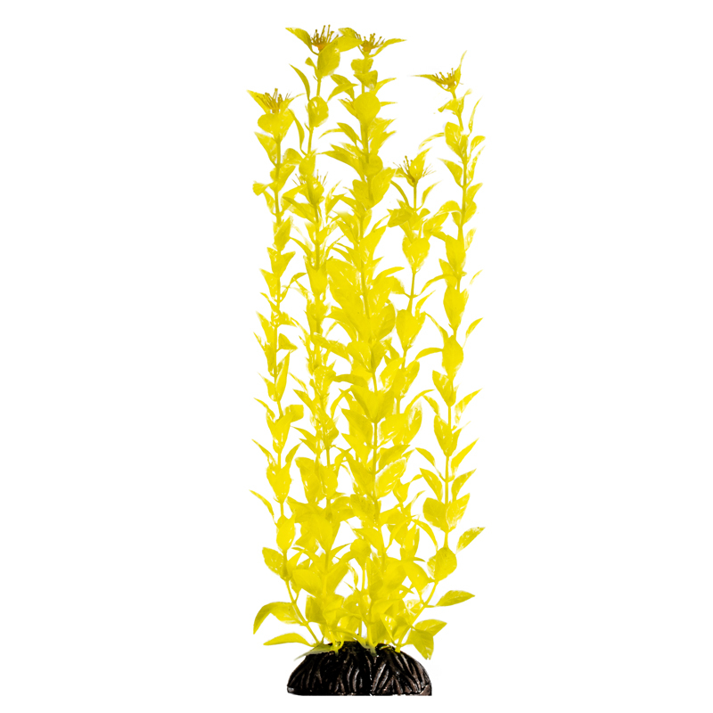 Растения - это не только завершающий штрих в оформлении, но и необходимый атрибут любого аквариума. Они придают трехмерность внутреннему пространству аквариума, а также служат дополнительным укрытием для небольших рыб, отвечая тем самым не только за эстетику, но и принося обитателям аквариума реальную пользу. Неоспоримое преимущество искусственных растений в том, что в них не заводятся паразиты и грибки, их легко мыть и дезинфицировать, и прослужат они неизмеримо дольше, чем живые растения. Изготовленное из нетоксичного пластика, растение для аквариума с тяжелой керамической подставкой "Людвигия ярко-желтая" подойдет для оформления любых типов пресноводных аквариумов.