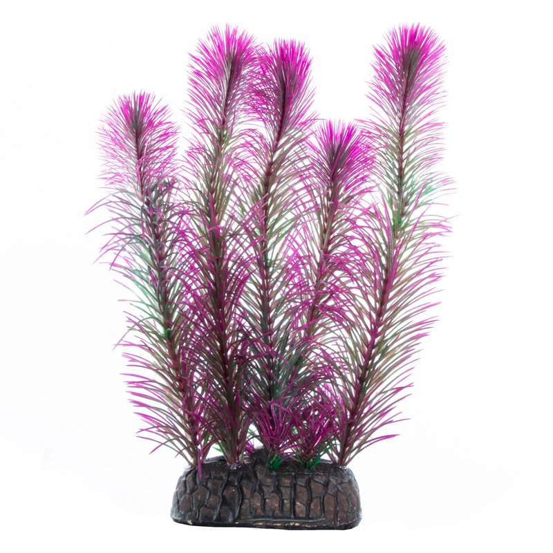 Растения - это не только завершающий штрих в оформлении, но и необходимый атрибут любого аквариума. Они придают трехмерность внутреннему пространству аквариума, а также служат дополнительным укрытием для небольших рыб, отвечая тем самым не только за эстетику, но и принося обитателям аквариума реальную пользу. Неоспоримое преимущество искусственных растений в том, что в них не заводятся паразиты и грибки, их легко мыть и дезинфицировать, и прослужат они неизмеримо дольше, чем живые растения. Изготовленное из нетоксичного пластика, растение для аквариума с тяжелой керамической подставкой "Перистолистник фиолетовый" подойдет для оформления любых типов пресноводных аквариумов.