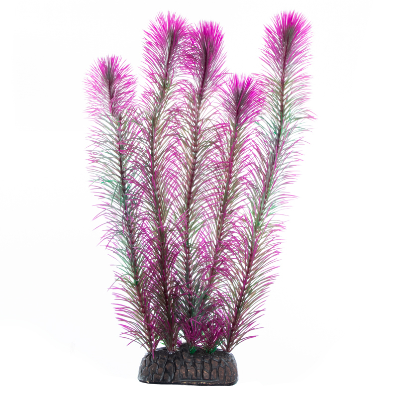 Растения - это не только завершающий штрих в оформлении, но и необходимый атрибут любого аквариума. Они придают трехмерность внутреннему пространству аквариума, а также служат дополнительным укрытием для небольших рыб, отвечая тем самым не только за эстетику, но и принося обитателям аквариума реальную пользу. Неоспоримое преимущество искусственных растений в том, что в них не заводятся паразиты и грибки, их легко мыть и дезинфицировать, и прослужат они неизмеримо дольше, чем живые растения. Изготовленное из нетоксичного пластика, растение для аквариума с тяжелой керамической подставкой "Перистолистник фиолетовый" подойдет для оформления любых типов пресноводных аквариумов.